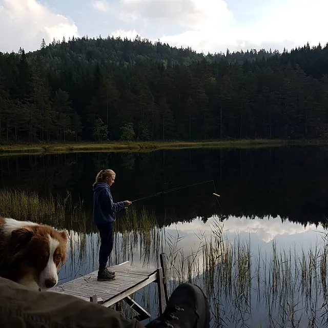 På gården vår kan du gå tur i skogen. For eksempel til grillhytta vår som ligger ved Homevannet, en halvtimes gåtur fra gården. Her er det fine fiskemuligheter. Du kan også gå til Duehei med sin vide utsikt. Herfra kan du blant annet se helt til Hekkfjell i Eiken.